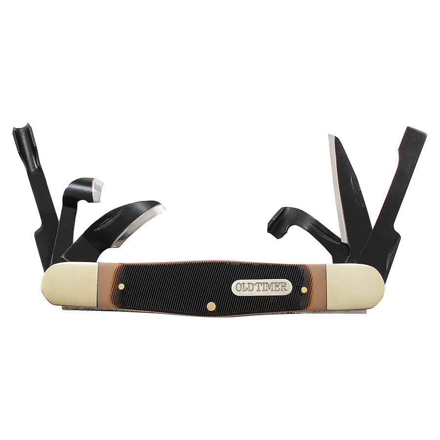 Schrade Old Timer Splinter Folding Carving Knife with 6x 65Mn High Carbon Steel Blades: