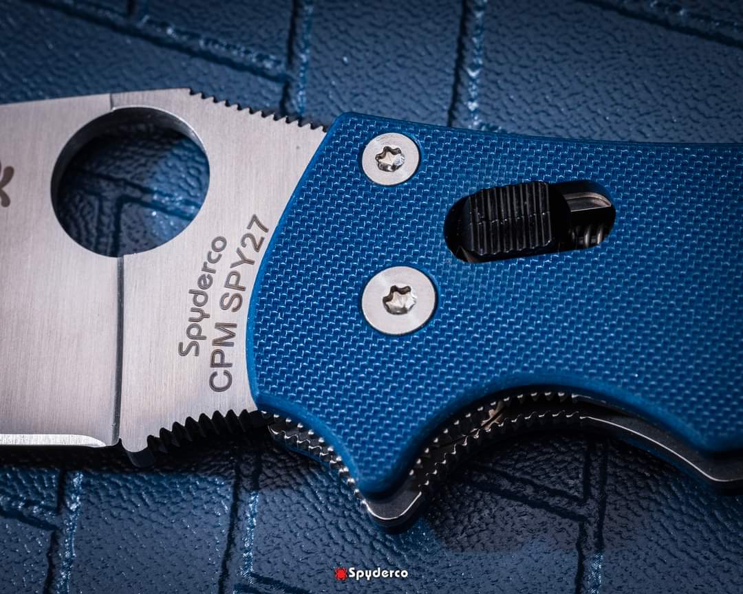The Manix 2 combines full-size, full-service cutting performance with the many advantages of Spyderco’s Ball Bearing Lock™ mechanism. Offering exceptional strength and smoothness of operation, this innovative lock also complements the Manix 2’s symmetry to make every aspect of its design completely ambidextrous. Now this workhorse folding knife is available with our proprietary steel—CPM SPY27. An elevated, powder-metallurgy expression of VG-10, SPY27 gives the full-flat-ground blade of this knife a superior balance of edge retention, toughness, and corrosion resistance. All other features of this knife are consistent with the standard versions of the Manix 2, except for its peel-ply-textured G-10 scales, which showcase the distinctive cobalt-blue color of our SPY27 family.