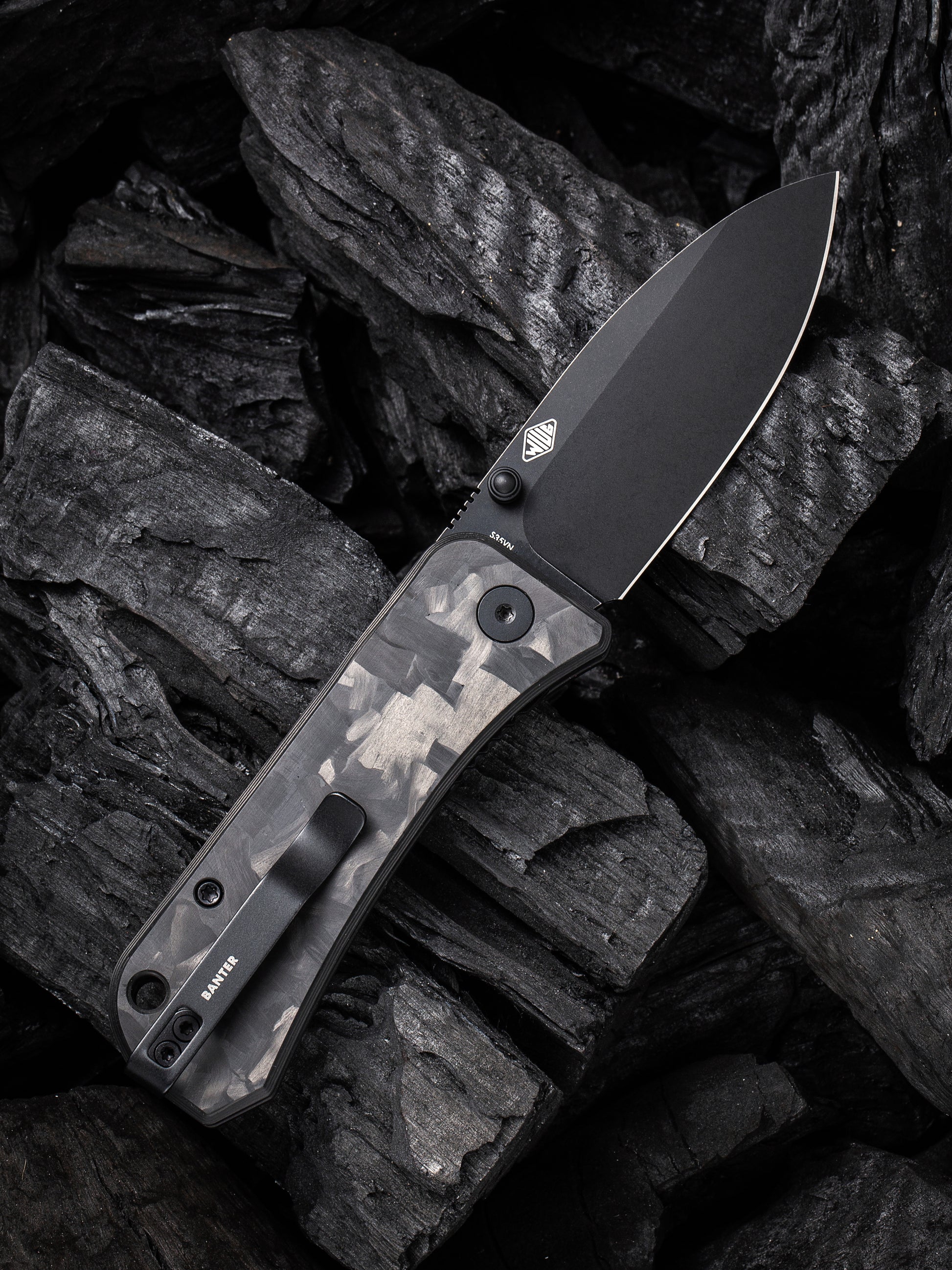 WE Banter 2.9" CPM S35VN Black Stonewash Marble Carbon Fiber Folding Knife 2004H