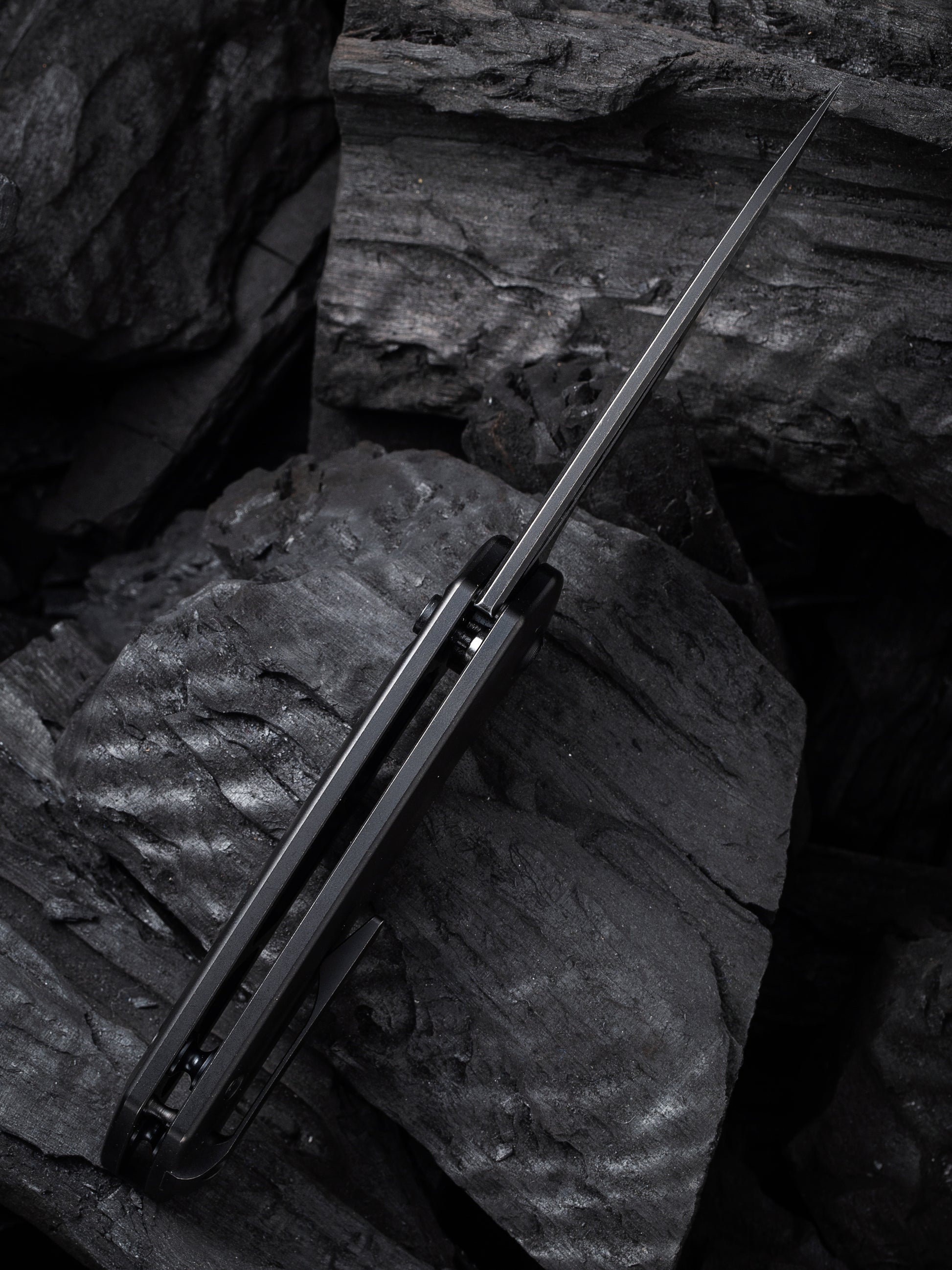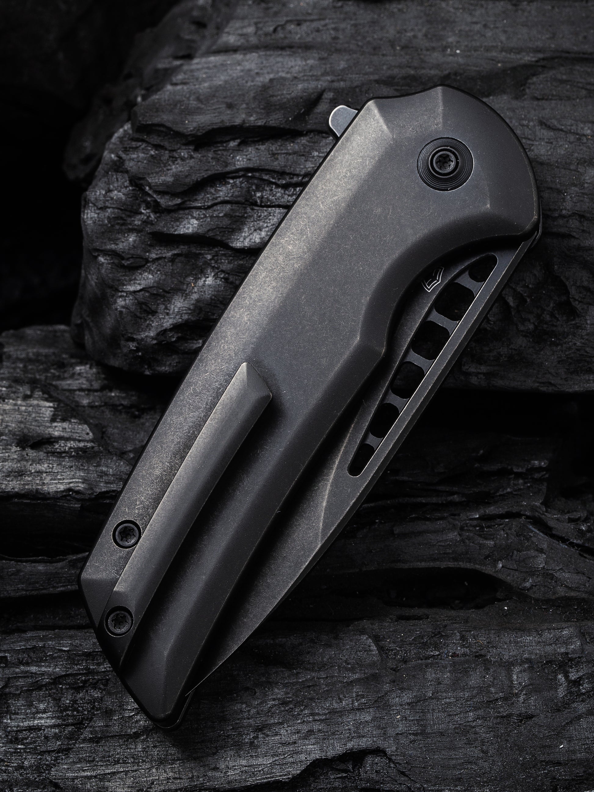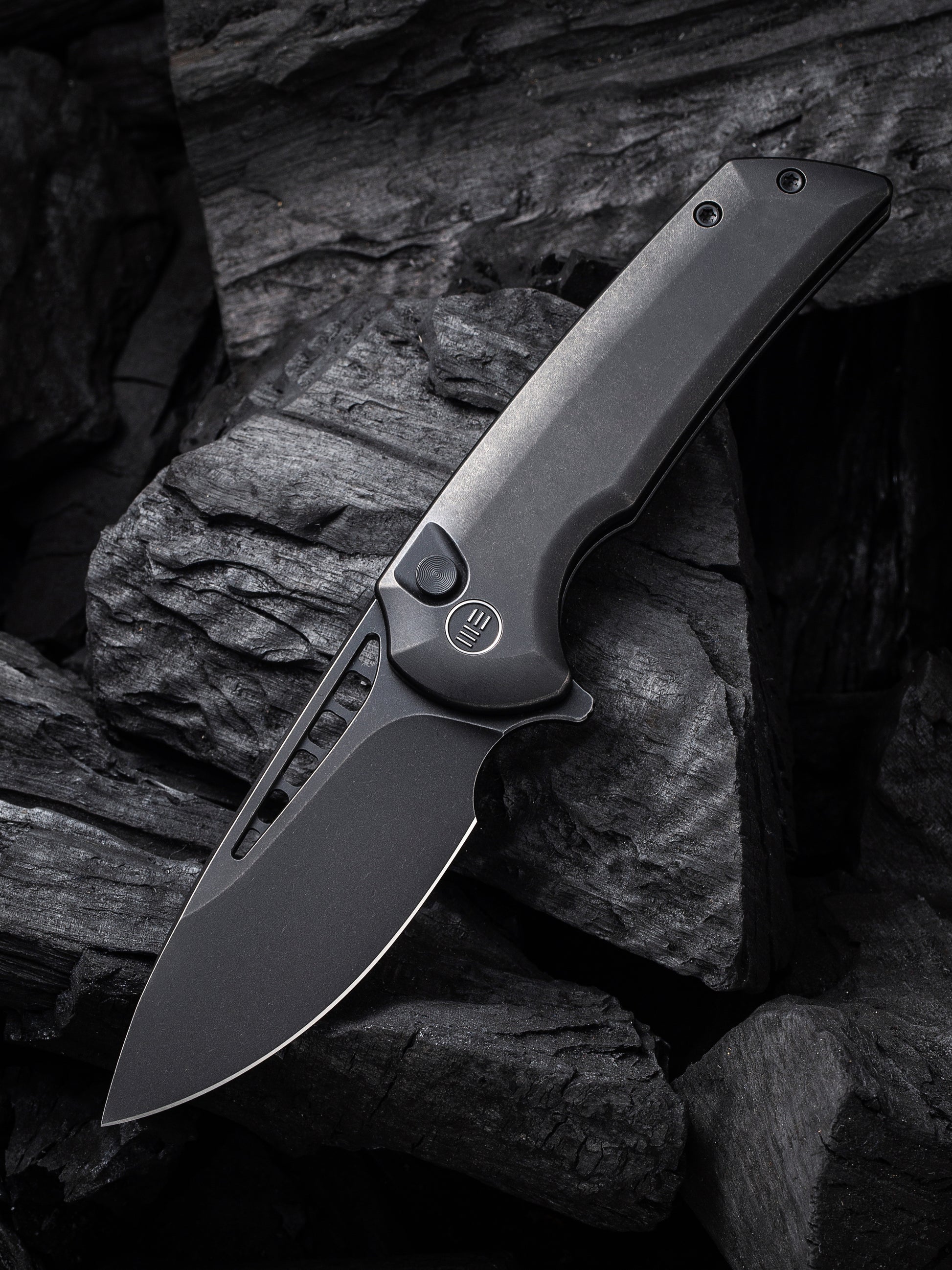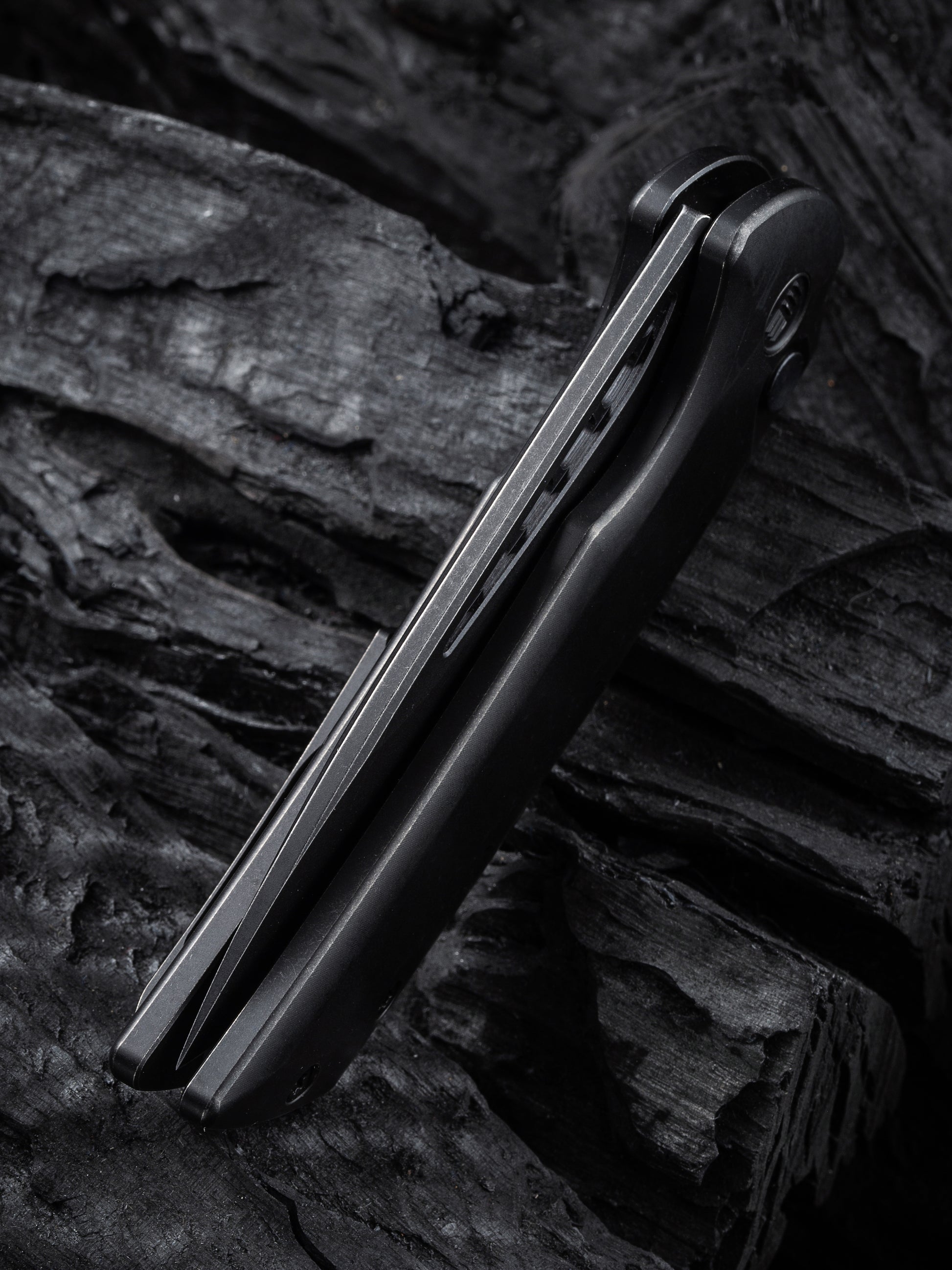 WE Mini Malice 2.98" Black Stonewashed CPM 20CV Black Titanium Folding Knife by Ferrum Forge WE054BL-1