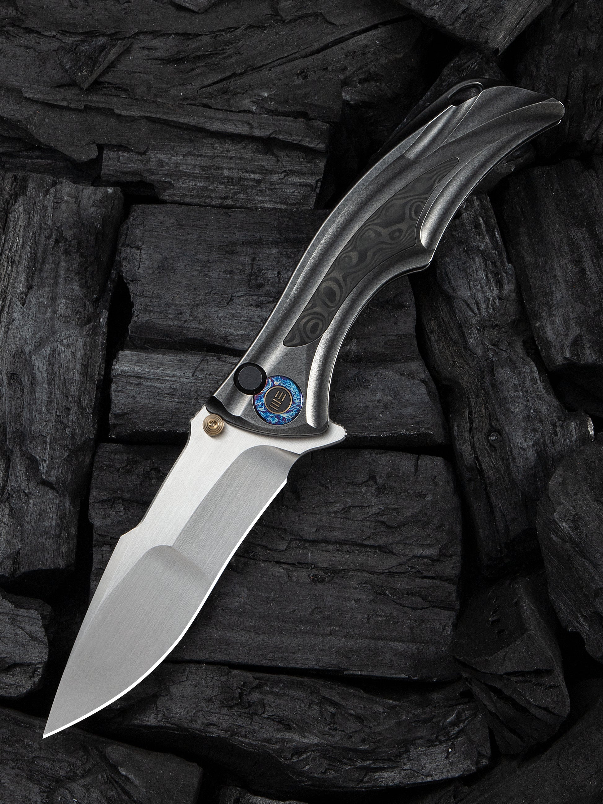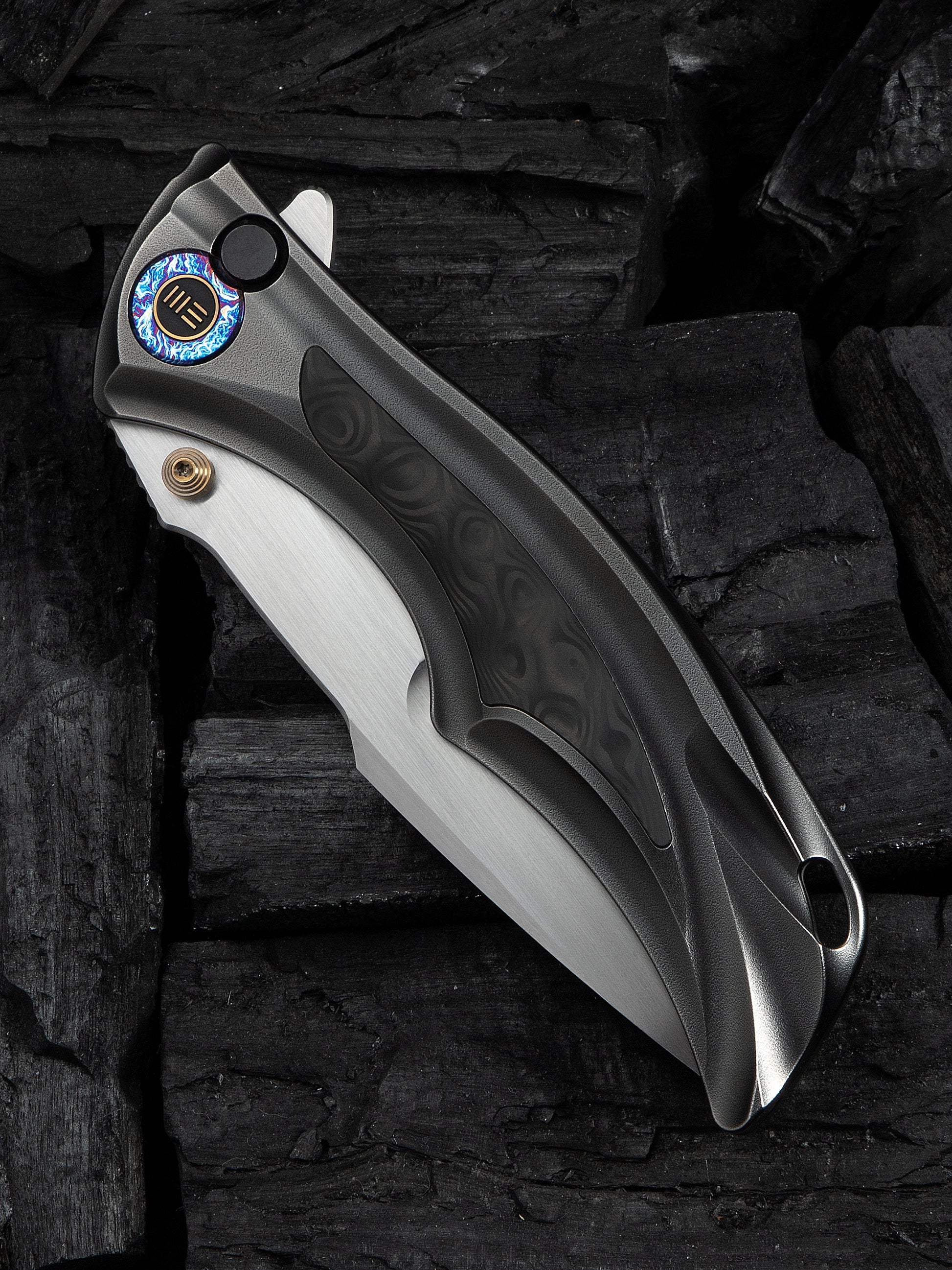 WE Tighe Down 4" Bohler M390 Gray Orange Peel Titanium Rose Carbon Fiber Folding Knife WE24054-2