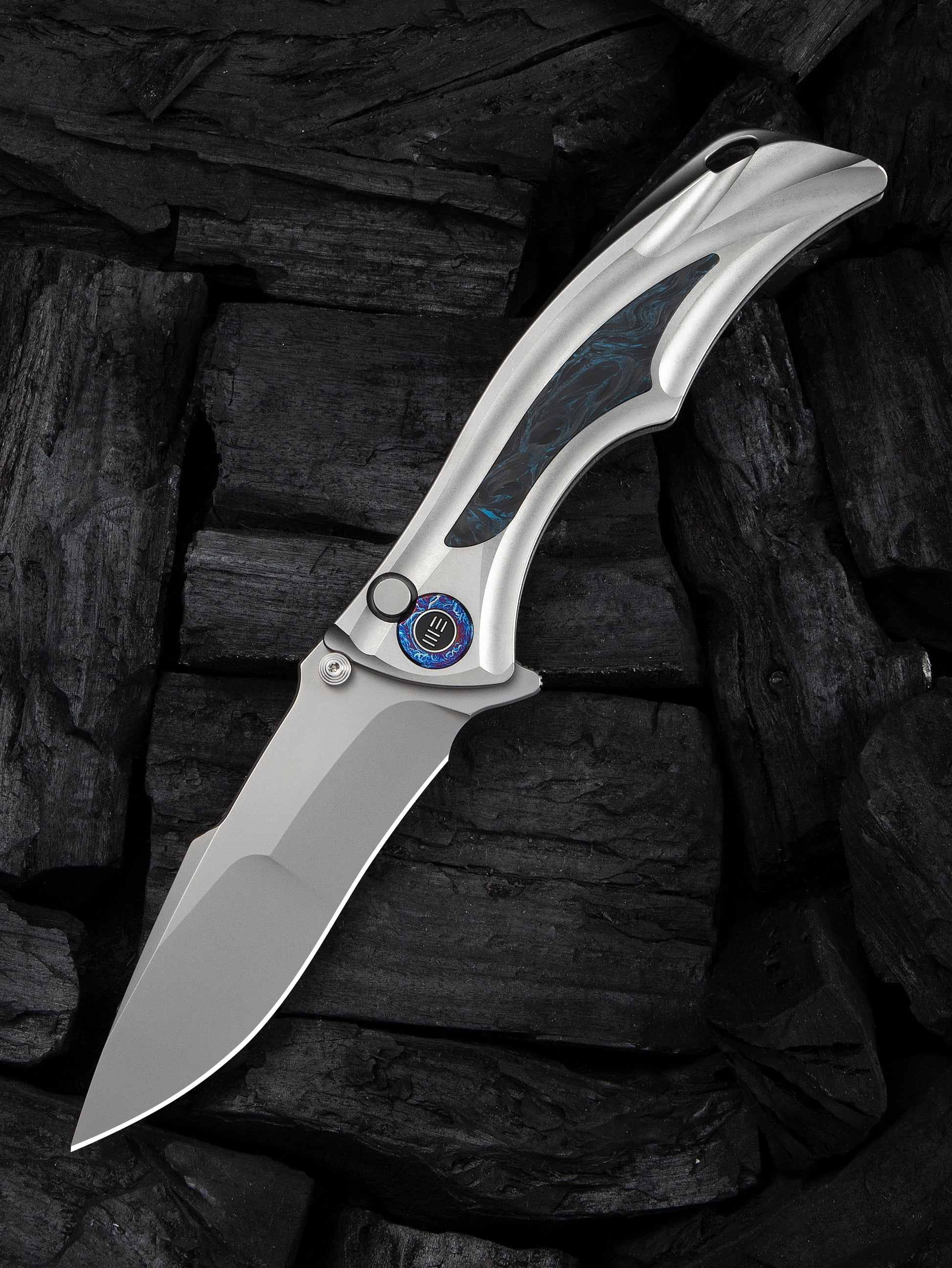 WE Tighe Down 4" Bohler M390 Titanium Black/Blue Carbon Fiber Folding Knife WE24054-1